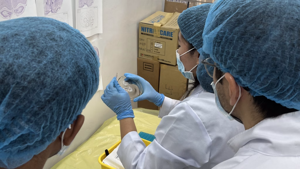 Project technical specialists from the depression project perform standardized harvesting and processing of brain and gut tissues from Sprague-Dawley rats for histological, molecular, and microbiota analyses.